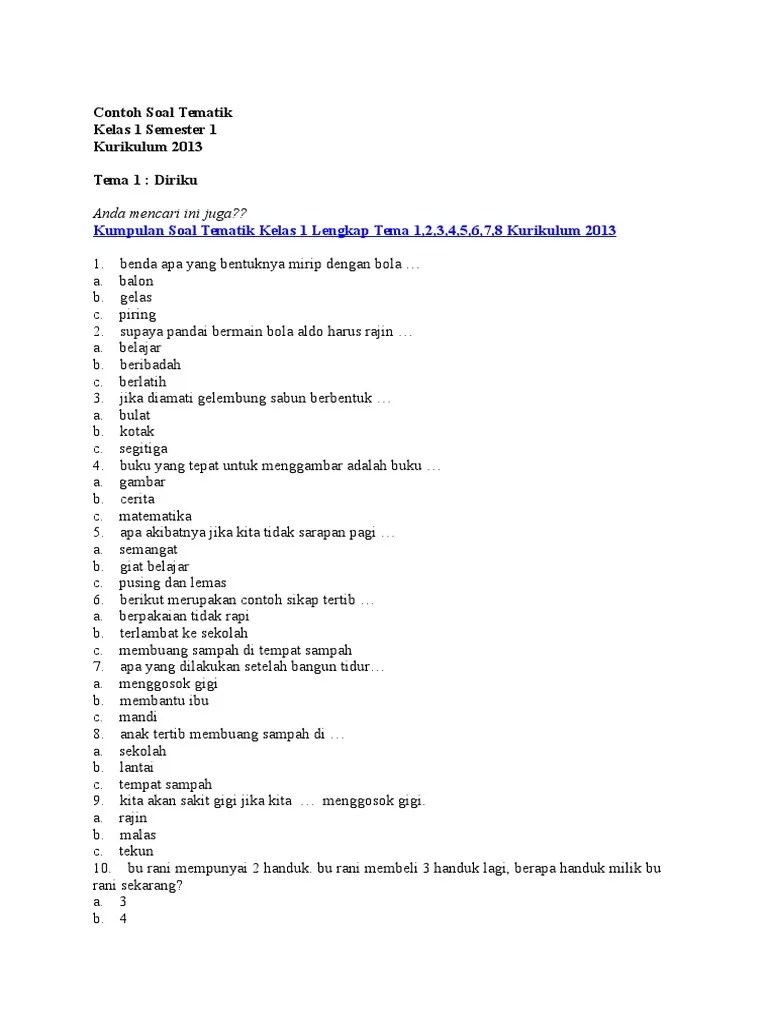 Contoh soalnya seperti dibawah ini : . Kumpulan soal lengkap ulangan harian sd/mi kelas 1 buku ini hadir sebagai penunjang bagi siswa yang ingin belajar dan berlatih mengerjakan soal. Dan pada kesempatan kali ini kami akan membahas soal matematika kelas 1 sd. (+kunci jawaban) ⭐ kumpulan lengkap kurikulum 2013 / k13 (pilihan ganda dan esai) ⭐ bank / latihan / contoh soal kelas 1 tema 1 subtema 3, . Berikut ini adalah kumpulan soal uas kelas 1 sd semester 1 dan file download soal uas pkn, bahasa indonesia, ips, ipa, matematika, dan bahasa inggris. Mengetuk pintu lalu memberi salam kepada orang tua, dan berterima kasih kepada tuhan, karena sudah tiba di rumah dengan selamat. Beli buku soal kelas 1 sd online terdekat di dki jakarta berkualitas dengan harga. Kumpulan soal matematika kelas 1 sd semester 1 tahun 2019 dilengkapi dengan kunci jawabannya yang bisa anda gunakan untuk melatih siswa anda . Contoh soal matematika kelas 1 tahun 2020/2021 semester 1 dan 2 beserta kunci jawabannya serta cara penyelesaiannya kurikulum 2013, .